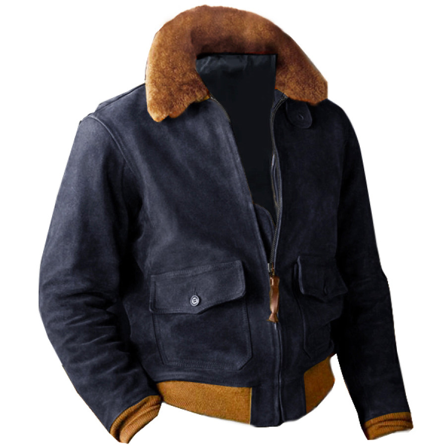 coats & jackets,мужская винтажная замшевая летная куртка уличная куртка-поло с меховым воротником и карманами на молнии пальто