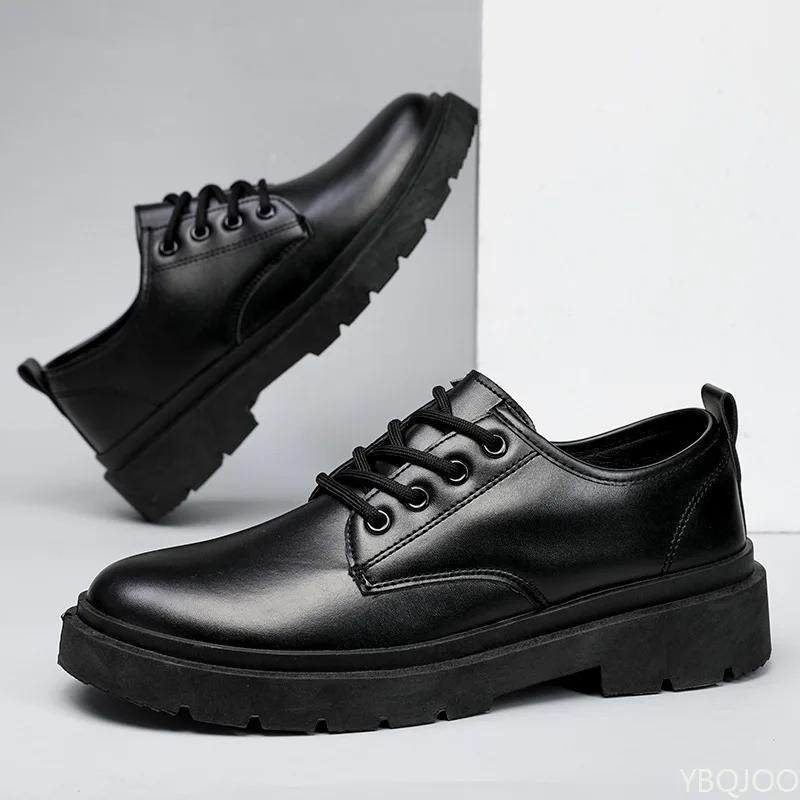 Мужская деловая обувь Весна Осень Новая Формальная кожаная обувь Повседневная модная спортивная обувь Социальная элегантность Трендовая обувь на плоской подошве 45 чёрный