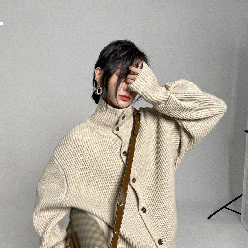 New High 2021 Cardigan Neck Knitted Shirt Winter Kpop Style Woman Clothes Ewd0 HNAR, Beige