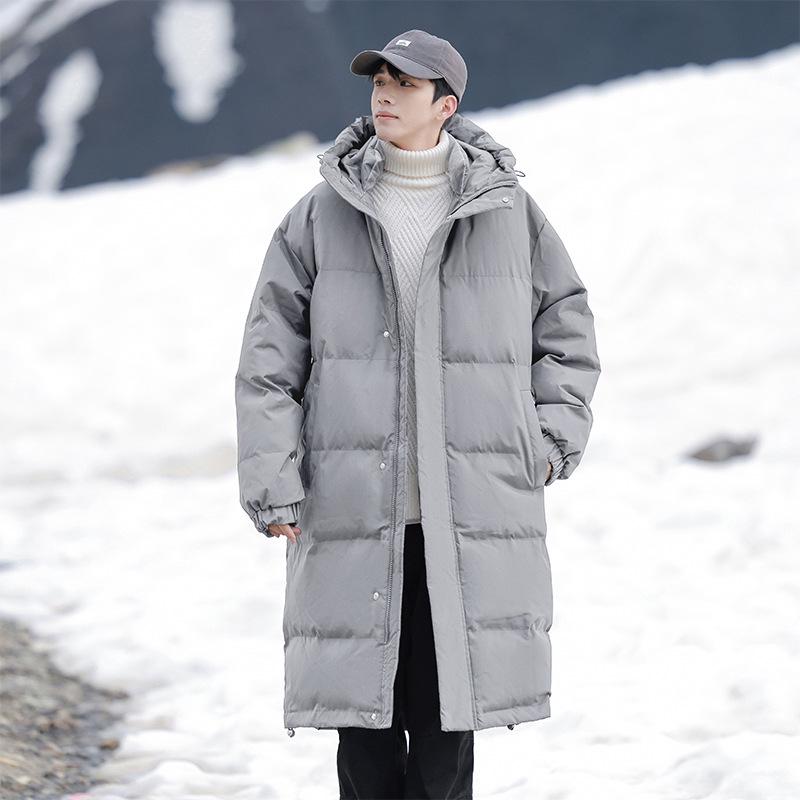 Мужская и женская уличная зимняя куртка с капюшоном на пуху белой утки: Ветрозащитное, Теплое, Пальто средней длины. S серый