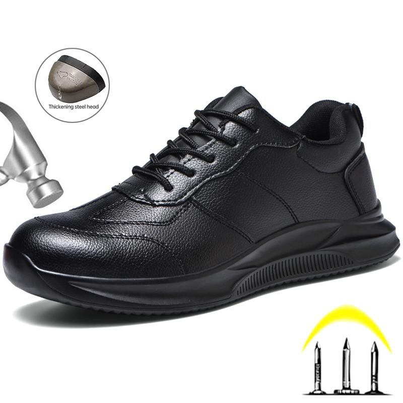Мужская защитная обувь из искусственной кожи, устойчивая к проколам рабочая обувь со стальным носком, мужская защитная обувь, черная дышащая рабочая обувь, мужская обувь