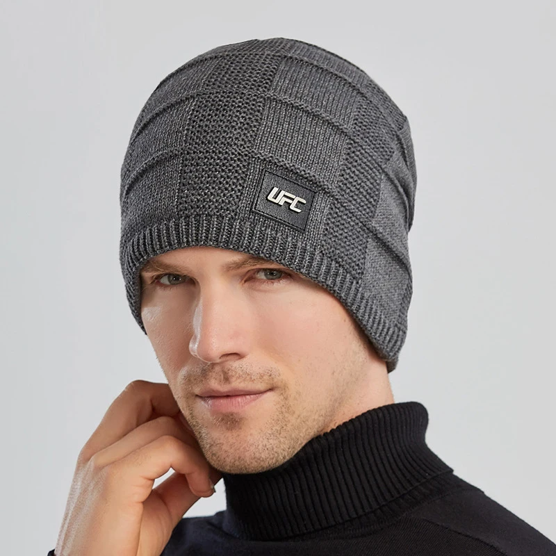 Мужская зимняя вязаная шапка для улицы, плюшевая теплая металлическая маленькая стандартная шапка-пуловер, Мужская шерстяная Шапка-бини дл...