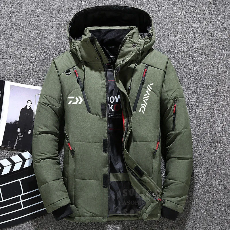 Мужская зимняя уличная Толстая рыболовная куртка Daiwa, пальто с капюшоном и несколькими карманами, повседневная спортивная одежда для альпи...