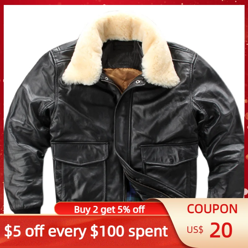 Мужская кожаная куртка в стиле милитари, черная свободная осенняя куртка-пилот из натуральной овечьей шкуры, модель 2022 большого размера 4XL, ...