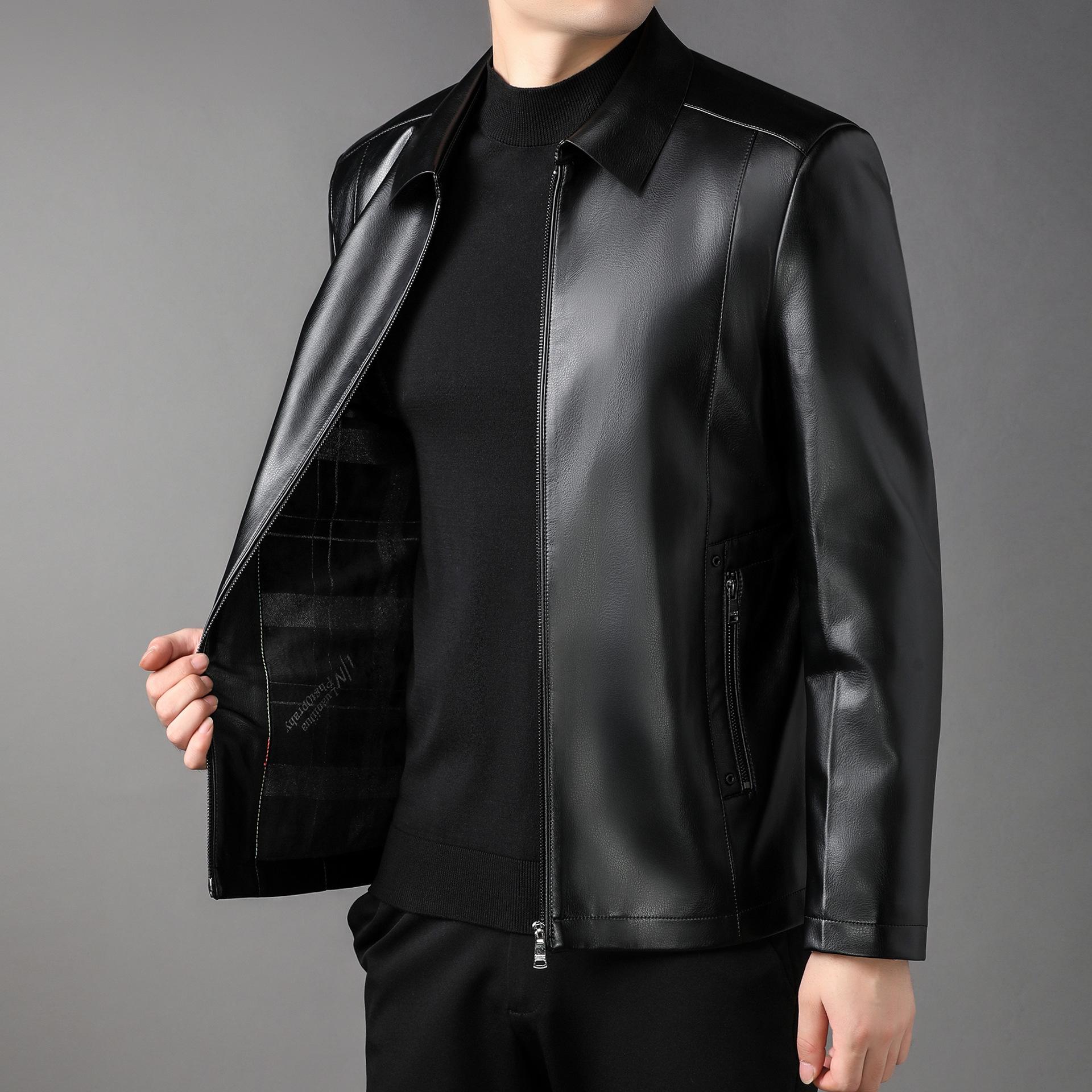 Мужская кожаная куртка мужская осенняя новая модель из масляной кожи среднего возраста модная деловая куртка с лацканами из искусственной кожи красивая мужская куртка тренд 4XL