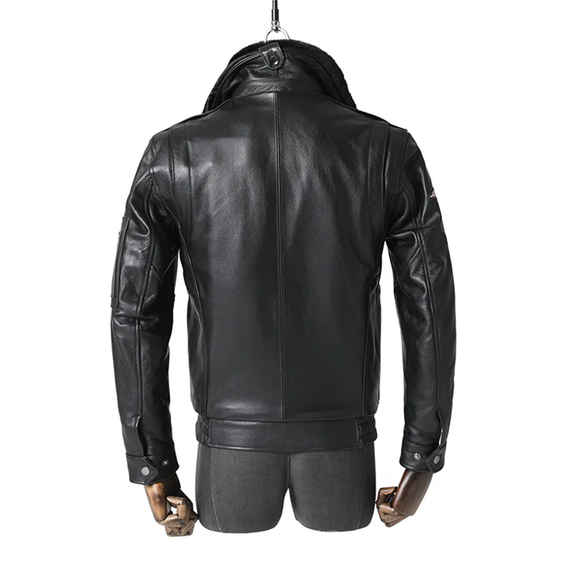 Мужская кожаная куртка-пилот в стиле милитари, черная Осенняя авиационная куртка из натуральной воловьей кожи с шерстяным воротником, моде...