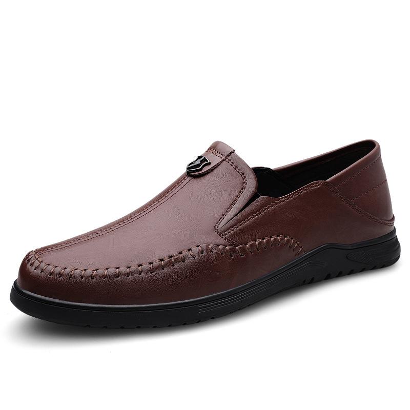 Мужская кожаная обувь модная деловая нарядная обувь на одной педали Doudou с мягкой подошвой дышащая обувь для вождения черная 46 коричневый