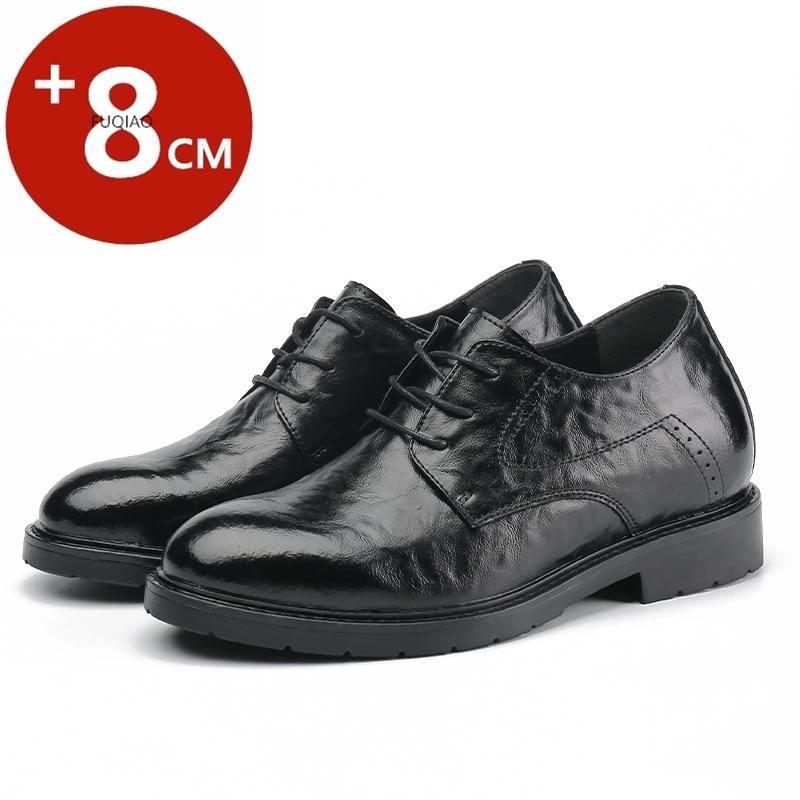 Мужская кожаная обувь Обувь на танкетке для мужчин Роскошная модельная обувь Формальная офисная деловая Удобная Увеличение 8 см Свадебная обувь 37 чёрный