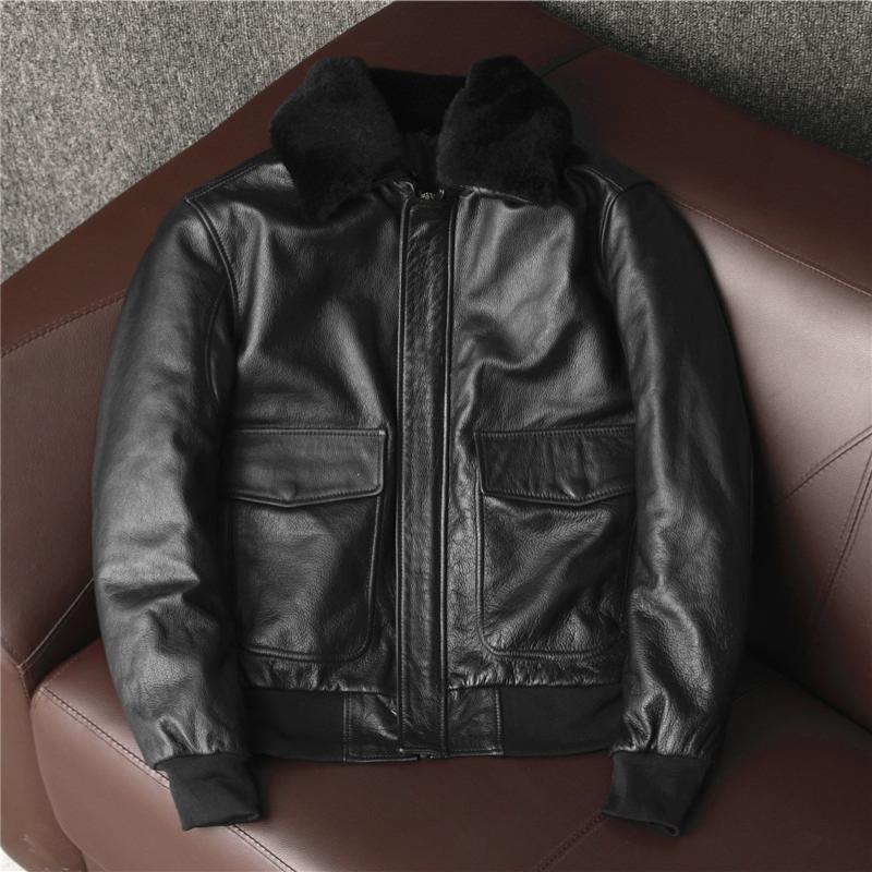 Мужская куртка-бомбер из натуральной кожи 100% лицевая коровья кожа зимняя теплая летная куртка большого размера стеганое пальто 4XL чёрный