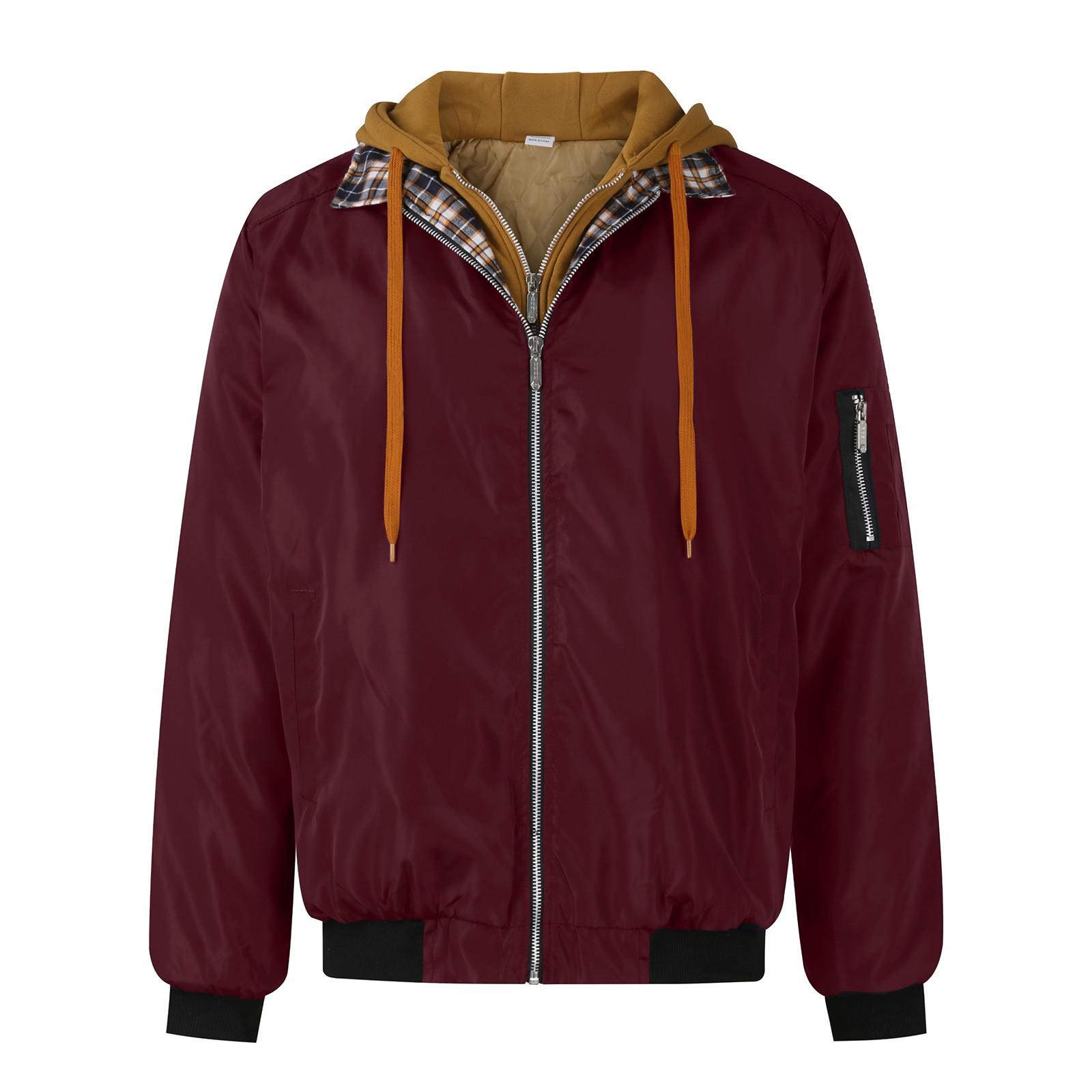 Мужская куртка-бомбер, стеганая куртка на молнии с длинными рукавами, зимняя флисовая теплая ветрозащитная мягкая спортивная куртка для пешего туризма, бега, ходьбы XL винный