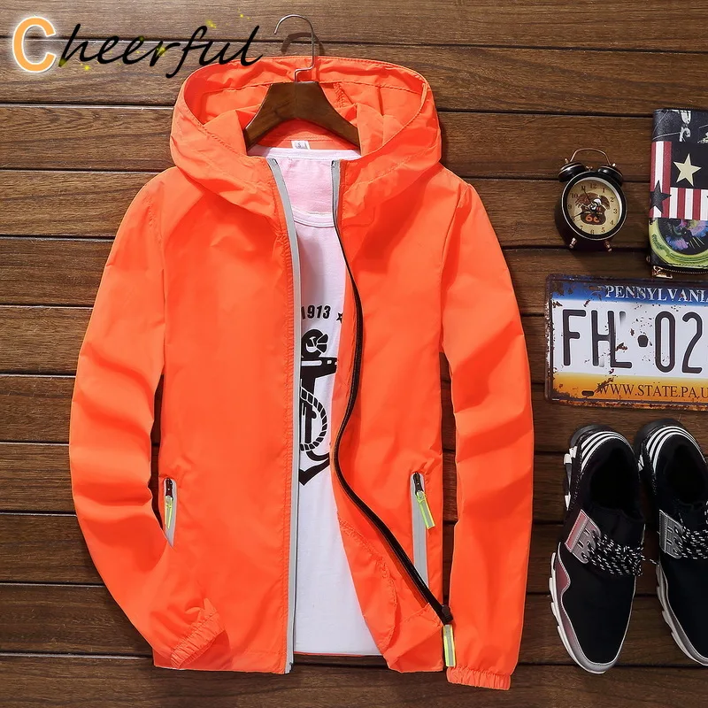 Мужская легсветильник летняя куртка с капюшоном, тонкая ветровка, упакованная кожаная куртка, Солнцезащитная Водонепроницаемая пляжная по...