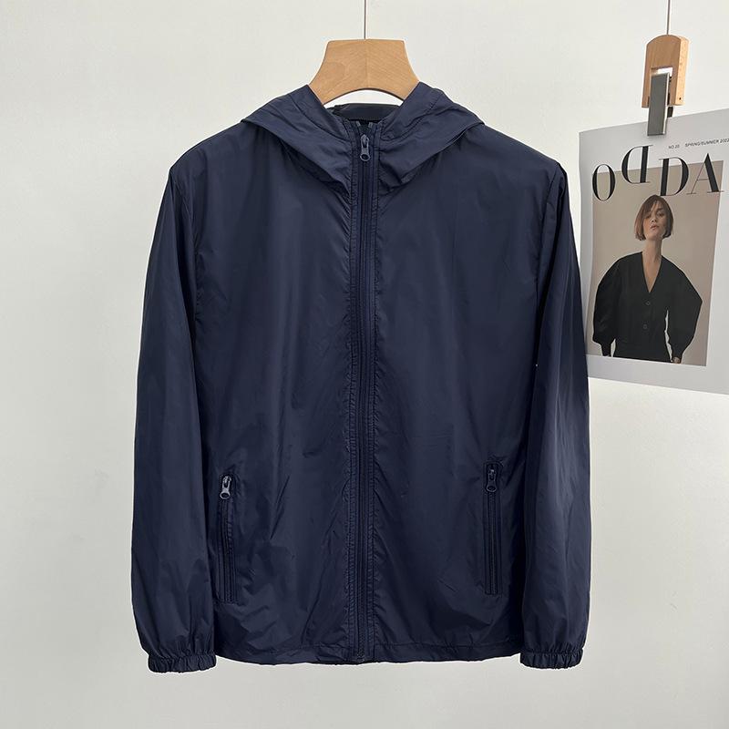 Мужская летняя дышащая ветровка с капюшоном для улицы - Солнцезащитная куртка для пар 2XL темно-синий