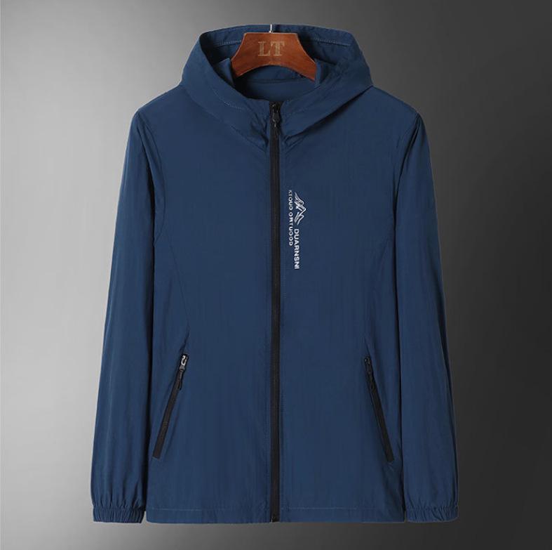 Мужская летняя легкая ветровка с капюшоном - защита от УФ-лучей, куртка на молнии с принтом для защиты от солнца на открытом воздухе 4XL синий