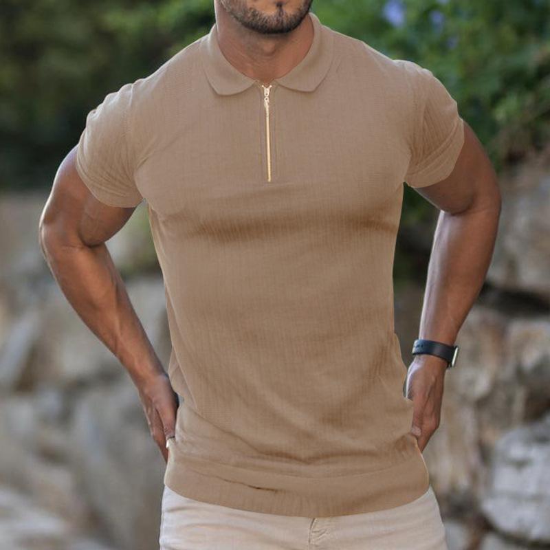 Мужская летняя спортивная, фитнес, повседневная футболка-поло с молнией, эластичной вертикальной полоской, с коротким рукавом для мужчин 4XL хаки
