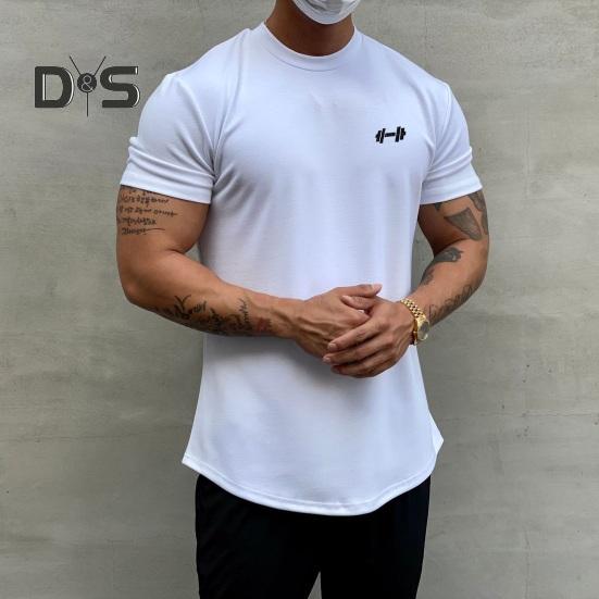 Мужская летняя спортивная футболка с круглым вырезом и коротким рукавом, облегающая однотонная эластичная быстросохнущая мягкая дышащая пуловер средней длины для бега в тренажерном зале, топ для тренировок XL белый