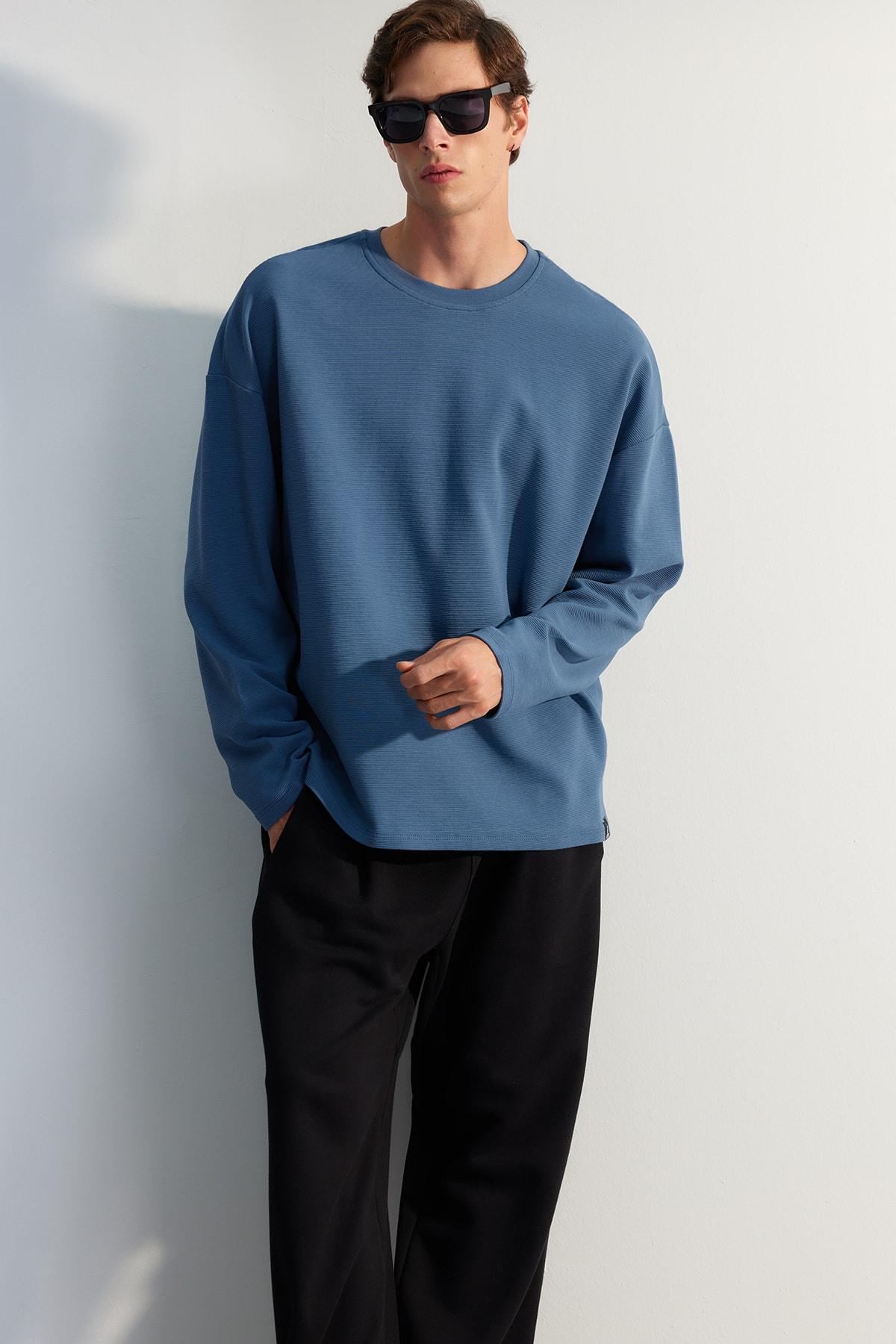 Мужская модная новая толстовка синего цвета большого размера, широкого кроя, ограниченная серия, текстурированная толстовка из 100% хлопка с маркировкой S