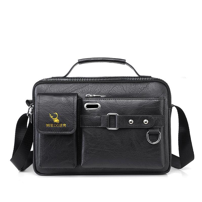 Мужская модная повседневная сумка через плечо большой емкости, сумка через плечо из искусственной кожи, сумка на одно плечо с ручкой чёрный