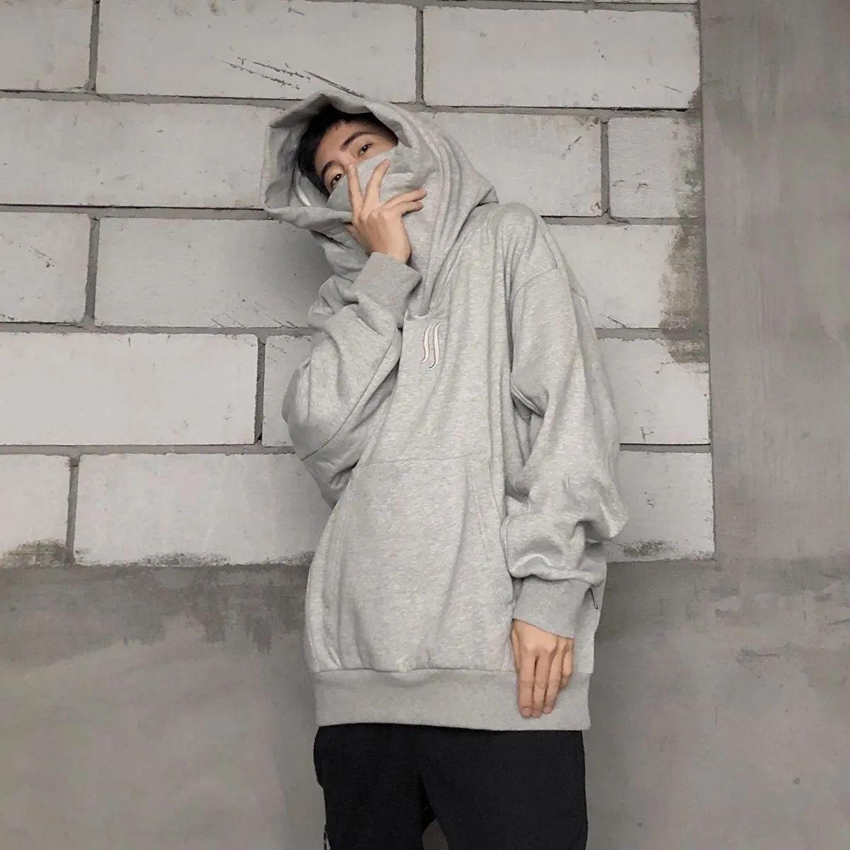 Мужская модная толстовка с высоким воротником и капюшоном для осени/зимы - Стильная, свободного кроя, уличная одежда, темные топы 3XL серый