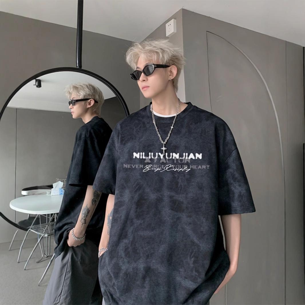 Мужская модная футболка с коротким рукавом в стиле тай-дай 2025: Стильный, Тяжелый, Молодежный, Свободного кроя, С рукавом до локтя для лета L