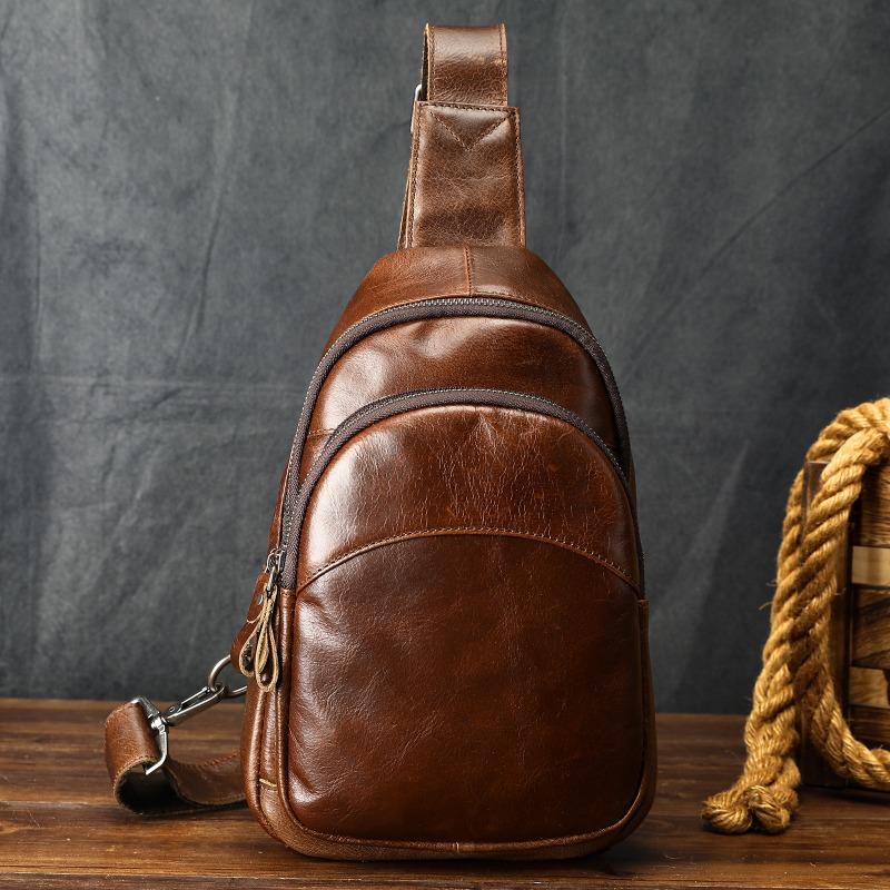 Мужская нагрудная сумка из натуральной кожи, сумка через плечо, верхний слой из коровьей кожи, модная мужская нагрудная сумка, небольшой рюкзак кофейный