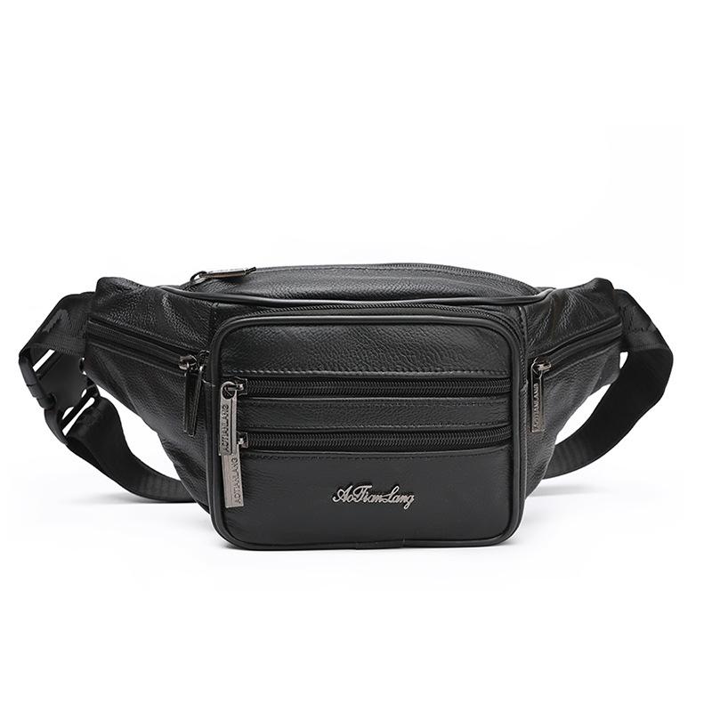 Мужская нагрудная сумка, модная поясная сумка из коровьей кожи, многосекционная сумка для телефона, кошелек для монет чёрный