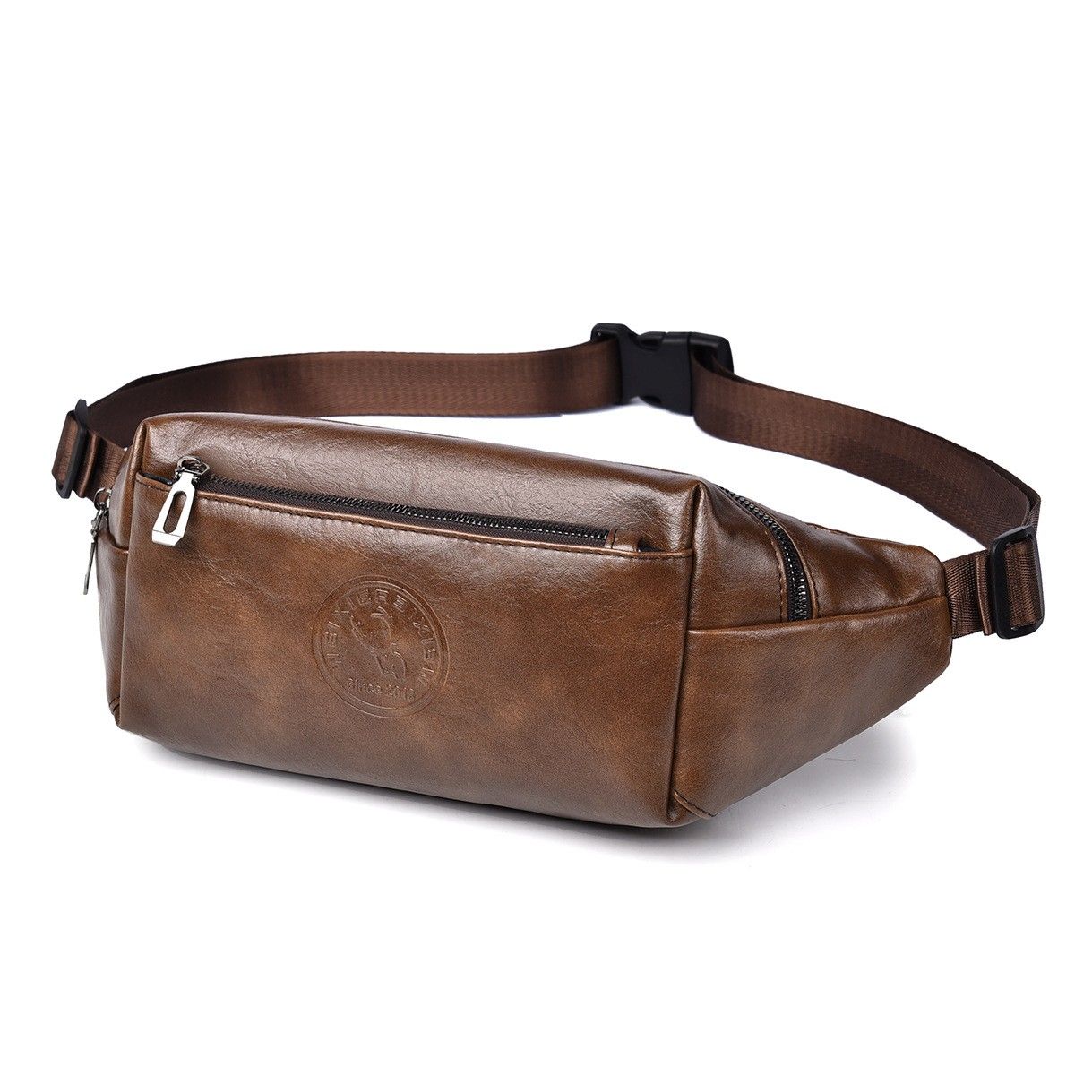 Мужская нагрудная сумка, модная сумка через плечо, многофункциональная поясная сумка, повседневная кожаная сумка через плечо, простая и легкая маленькая сумка через плечо коричневый