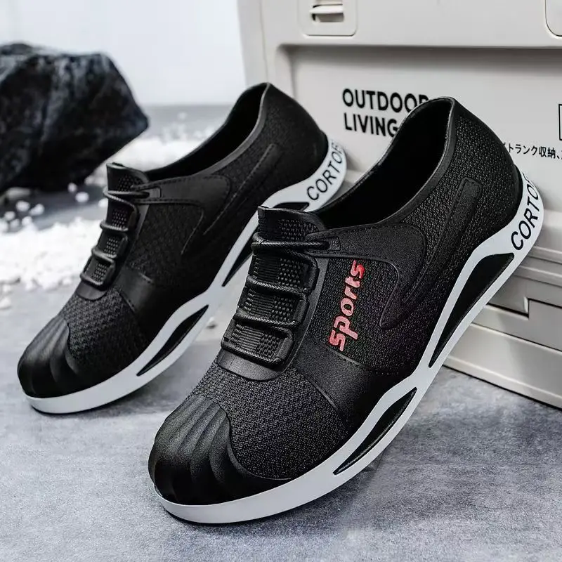 Мужская новая низкая непромокаемая обувь большого размера, водонепроницаемая маслостойкая кухонная рабочая обувь, мягкая подошва, нескользящая нескользящая обувь с круглым носком без шнуровки на рыбацком вейке
