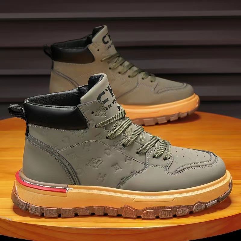 Мужская новая осенне-зимняя теплая повседневная обувь с высоким берцем, альпинистские хлопковые ботинки на толстой подошве, обувь 44 зелёный