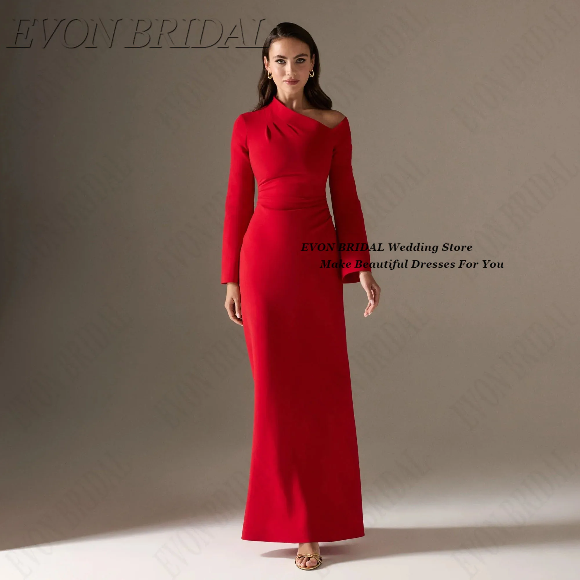 EVON BRIDAL A-Line Woman Ceremony Dress Long Sleeves Red Carpet Wedding Evening Gown Soft Satin Evening Party Dress Customized