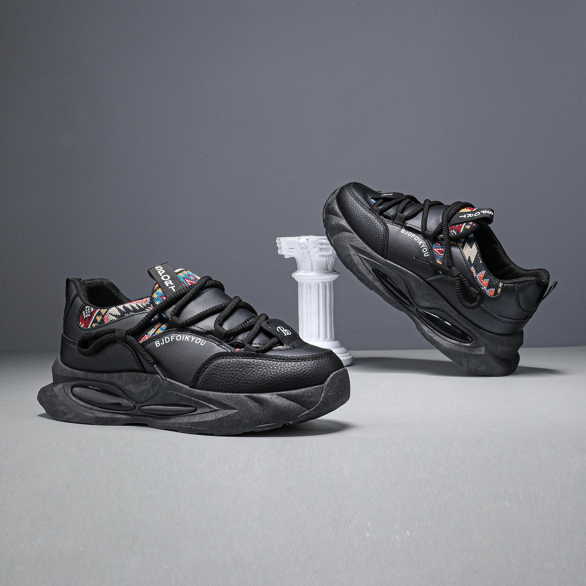 Мужская обувь весенний тренд нишевая оригинальная повседневная спортивная обувь для бега мужская воздушная подушка амортизация толстая подошва маленькие белые папины туфли 44 чёрный