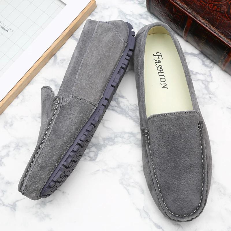 Мужская обувь в британском стиле, кожаные туфли на плоской подошве, повседневная мужская обувь, мокасины для вождения, мягкие лоферы, замшевая классическая обувь 44 серый