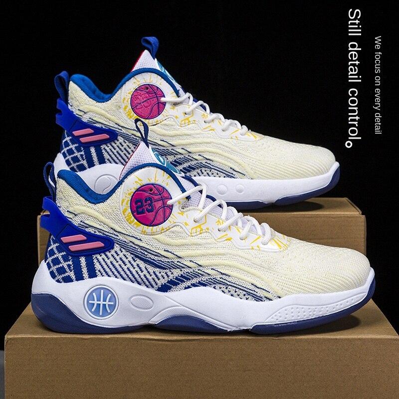 Мужская обувь, летняя дышащая новая спортивная обувь, мужские легкие сетчатые летающие вязаные баскетбольные кроссовки для мальчиков 45 синий