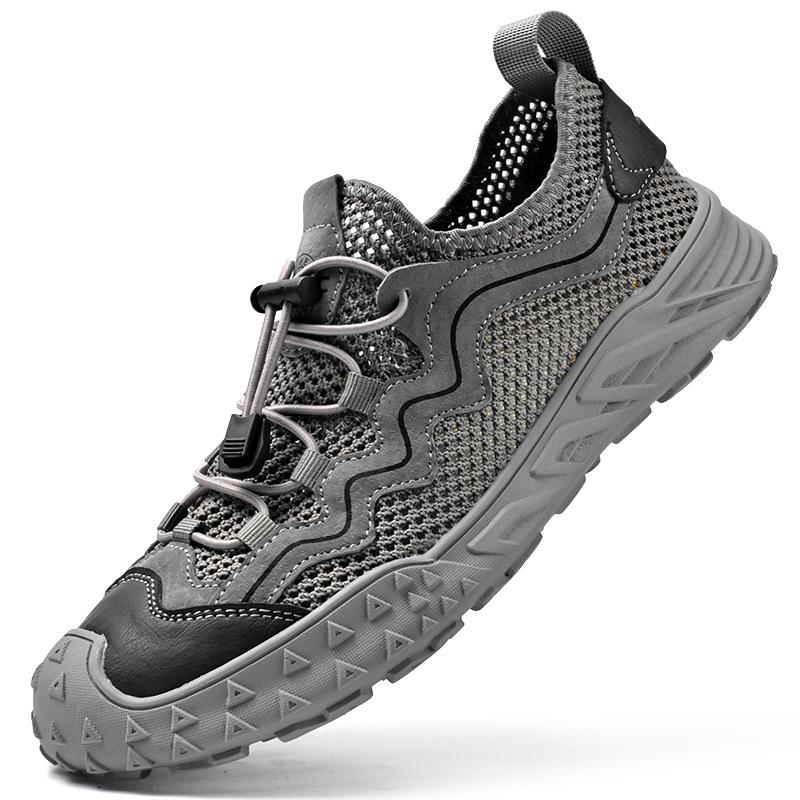 Мужская обувь летняя дышащая тонкая сетчатая полая сетчатая спортивная для отдыха беговая для альпинизма для ходьбы по ручьям легкая сетчатая обувь 46 серый