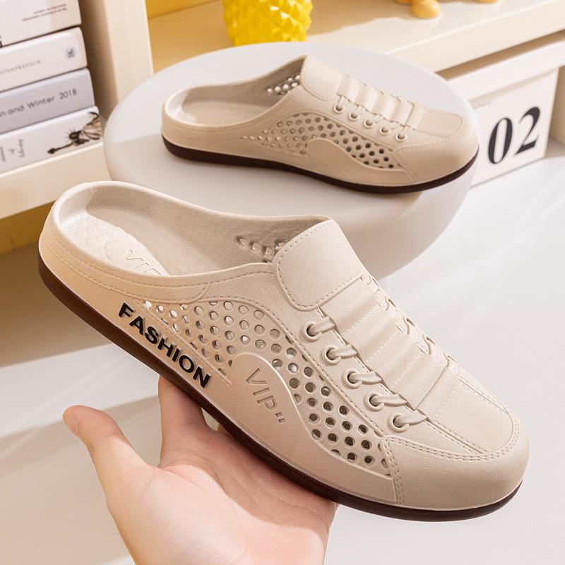 Мужская обувь лето новая дышащая сетчатая обувь мужская на одной педали ленивая без пятки полушлепанцы модная универсальная повседневная трендовая обувь 44-45 хаки