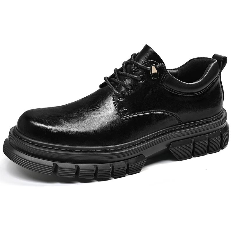 Мужская обувь, осенняя деловая деловая обувь в британском стиле, повседневная кожаная обувь для работы, черная модная обувь на толстой подошве увеличенной высоты с большой головкой 43 чёрный