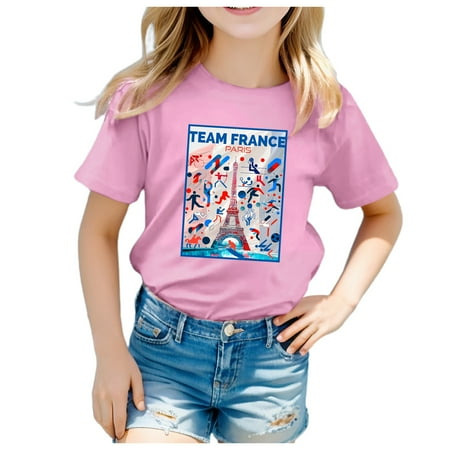 Dr.Eam Little Girls Tees T-Shirts Unisex Kids Print Tee Boy Girl Funny T Shirts Short Sleeve Round Neck Top For 3 13Y Fashion Tops Casual Soft Dailywear Pink 3 Y-4 Y