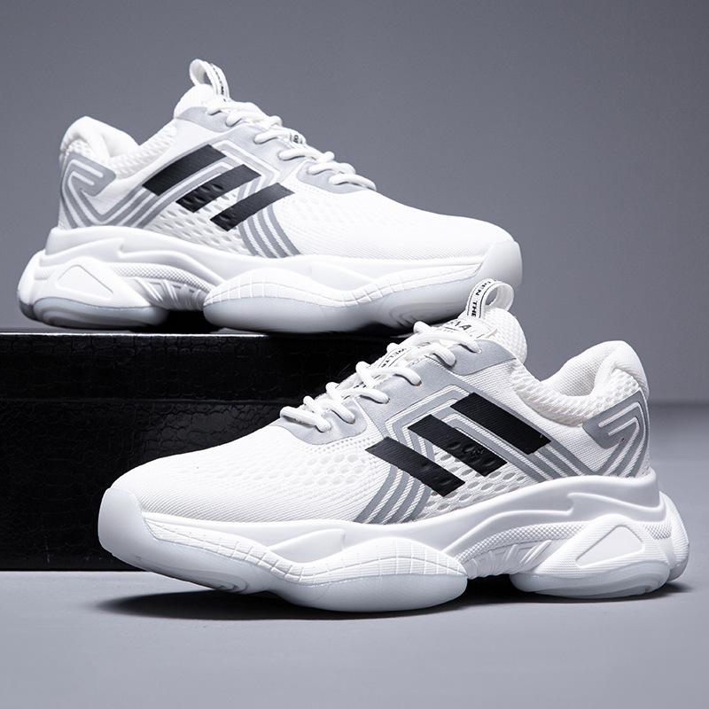 Мужская обувь очень большого размера, новые сетчатые спортивные туфли лето 2025, модная повседневная обувь, папины кроссовки на толстой подошве с внутренней высотой 44 белый