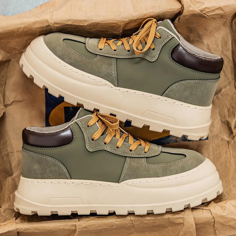 Мужская обувь 2024 осень и зима новая нишевая черная рабочая обувь на платформе мужская водонепроницаемая и нескользящая на толстой подошве средней высоты повседневная модная обувь 44 зелёный
