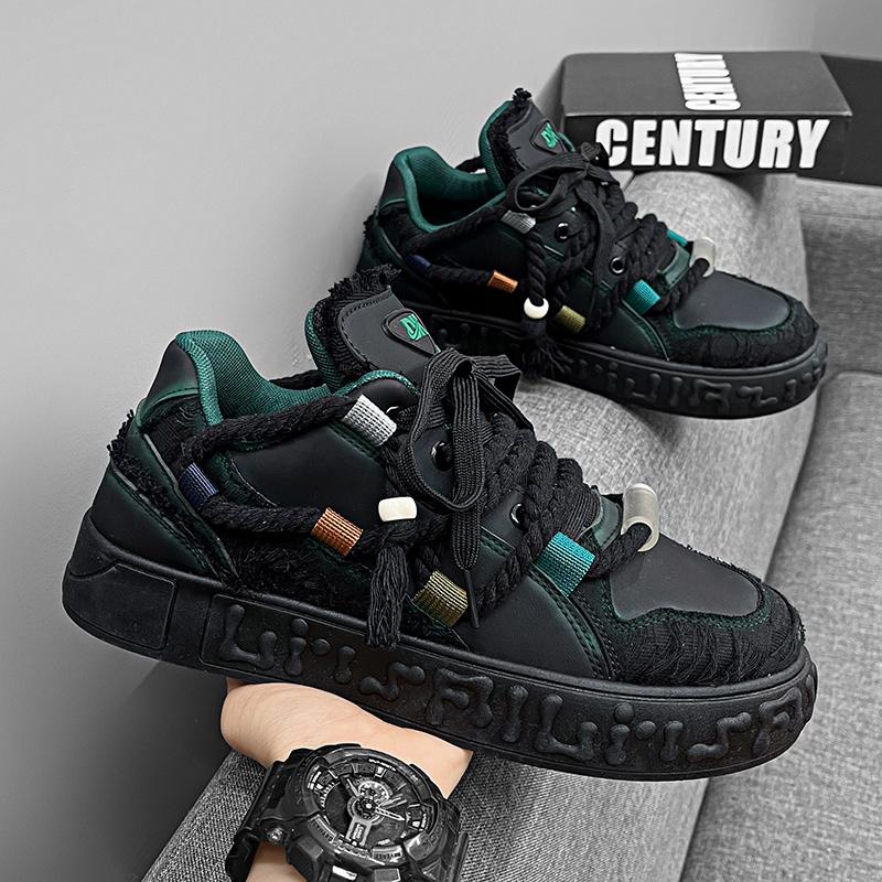 Мужская обувь 2025 года, новая весенняя универсальная спортивная повседневная обувь для серфинга, молодежная модная брендовая платформа, интернет-знаменитость, взрыв, белые туфли 44 чёрный
