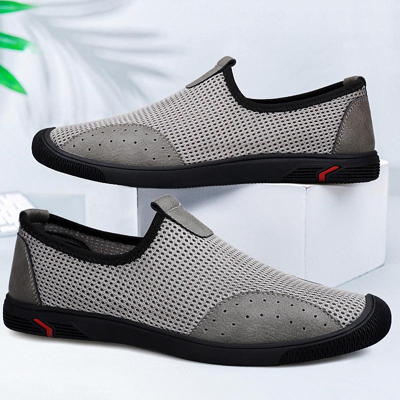 Мужская обувь 2025 лето новая ленивая на одной педали мягкая подошва для вождения повседневная обувь тонкая дышащая сетчатая обувь мужская 45