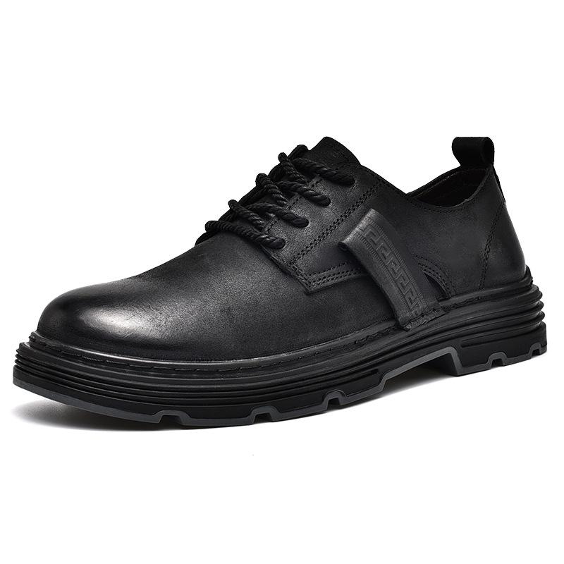 Мужская обувь 2025 осень новая износостойкая круглый носок британский тренд рабочая обувь кожаная модная уличная обувь с большой головой 38 чёрный