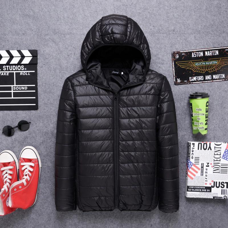 Мужская однотонная хлопковая куртка с капюшоном - Легкая, тонкая, многоцветная, стиль осень/зима, возможна индивидуальная печать 2XL чёрный
