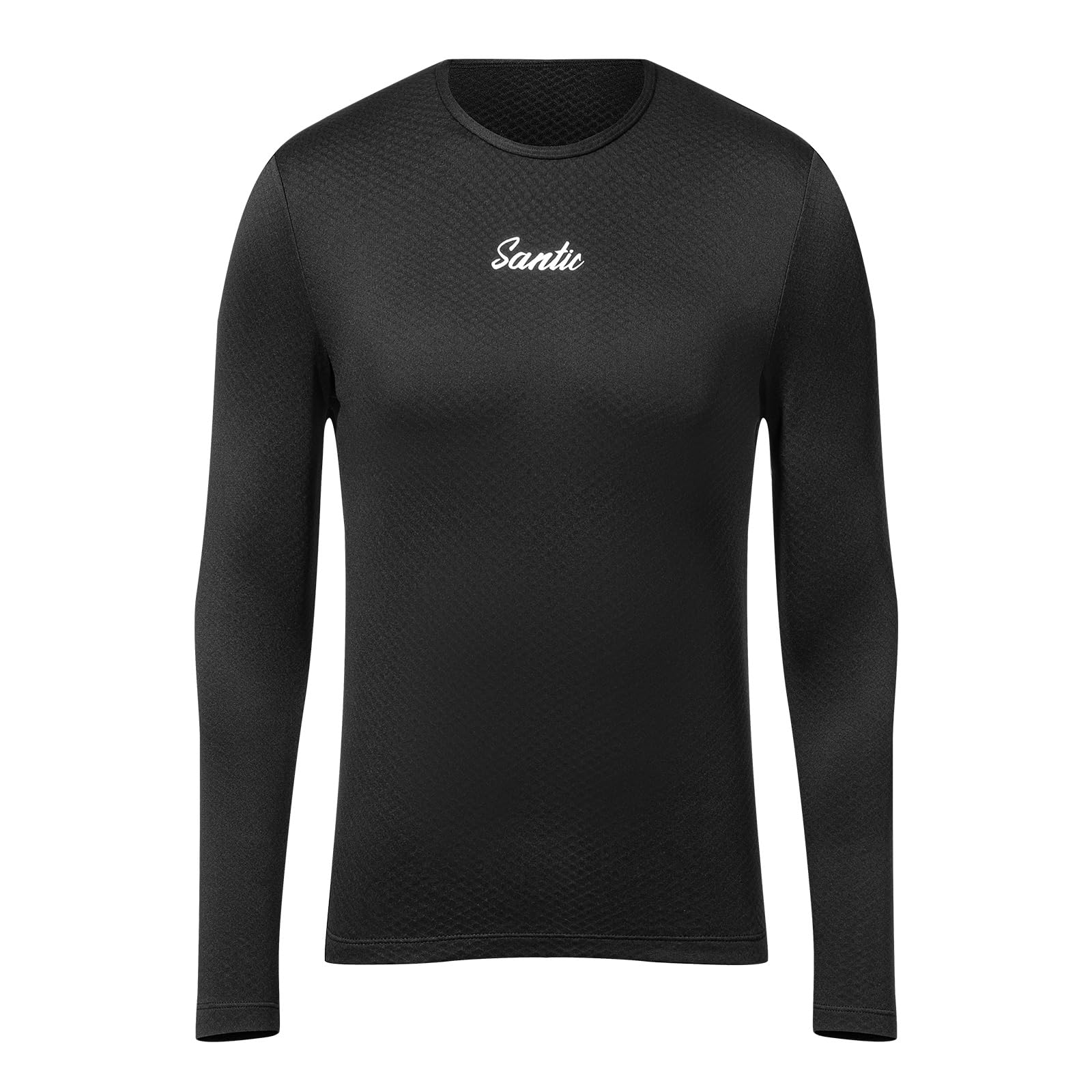 Мужская осенне-зимняя велоджерси Santic, на флисовой подкладке, с длинным рукавом, теплая, эластичная, влагоотводящая, черная, размер XL