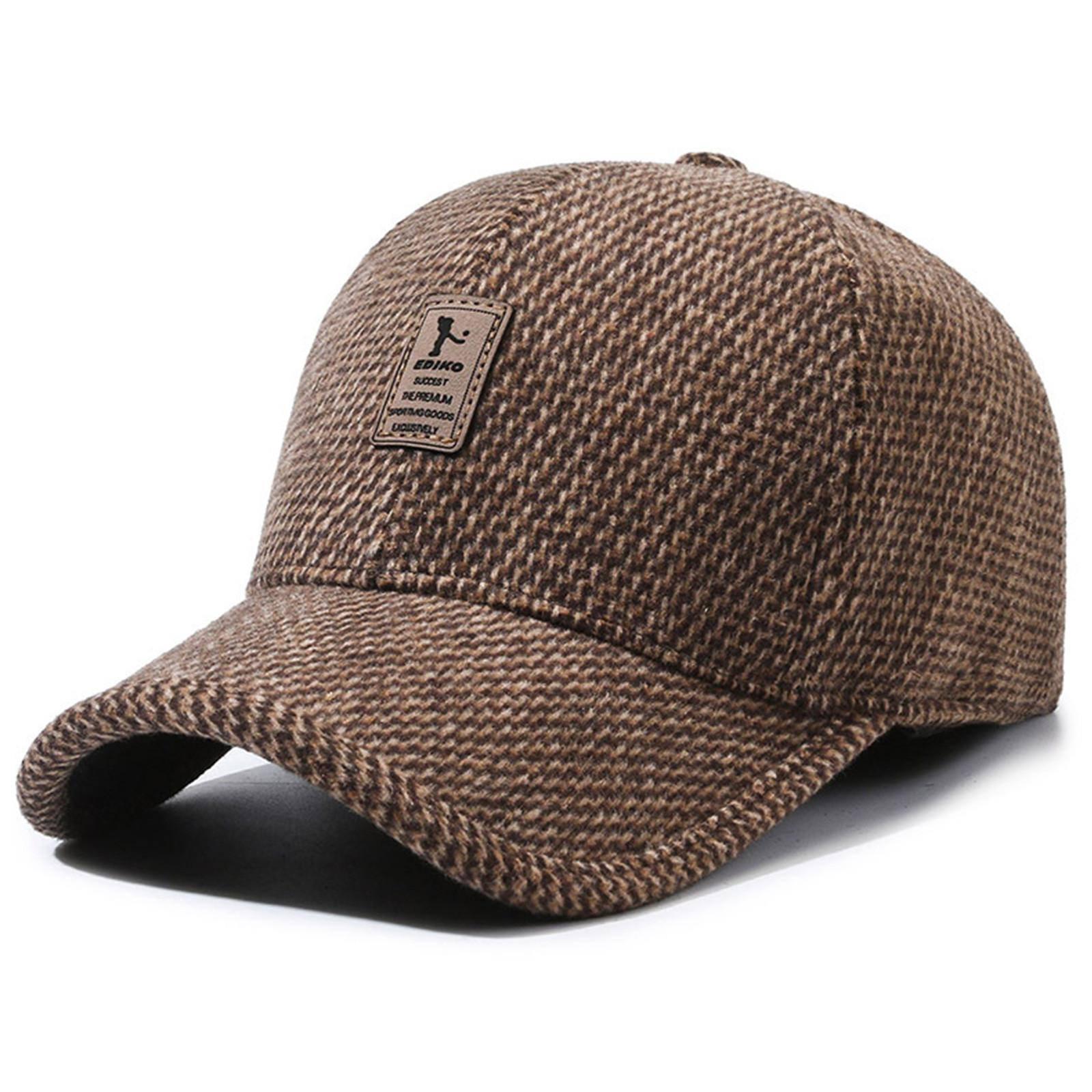 Мужская осенне-зимняя кепка с ушками, шерстяная кепка, ветрозащитная и морозостойкая, толстая, теплая, для улицы, для людей среднего и пожилого возраста, бейсболка One Size коричневый