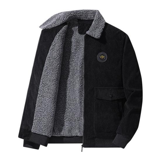 Мужская осенне-зимняя однотонная куртка с лацканами и длинными рукавами с клапанами и карманами на молнии, вельветовое пальто, верхняя одежда с утолщенной флисовой подкладкой 3XL чёрный
