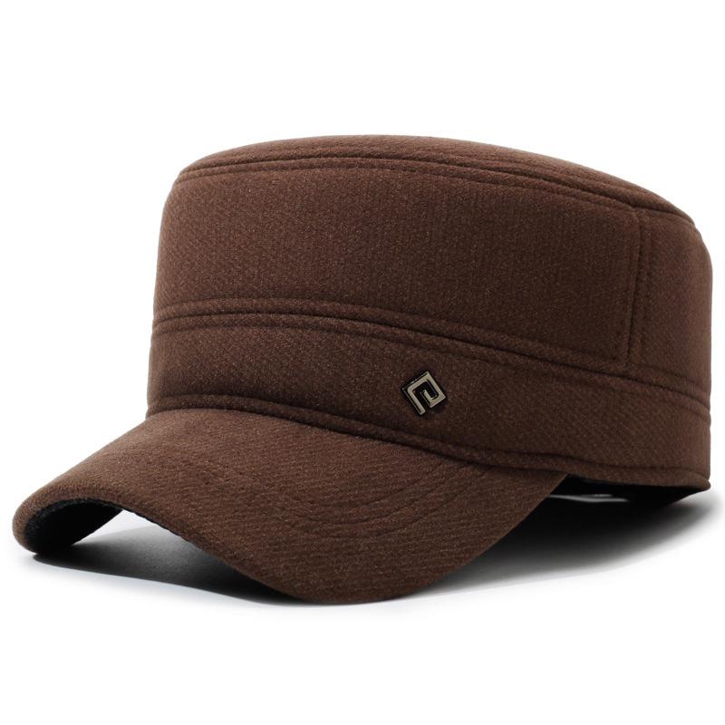 Мужская осенне-зимняя шапка, теплая шапка, для среднего и пожилого возраста, зимняя защита ушей, плоская кепка, уличная бархатная толстая хлопковая шапка кофейный
