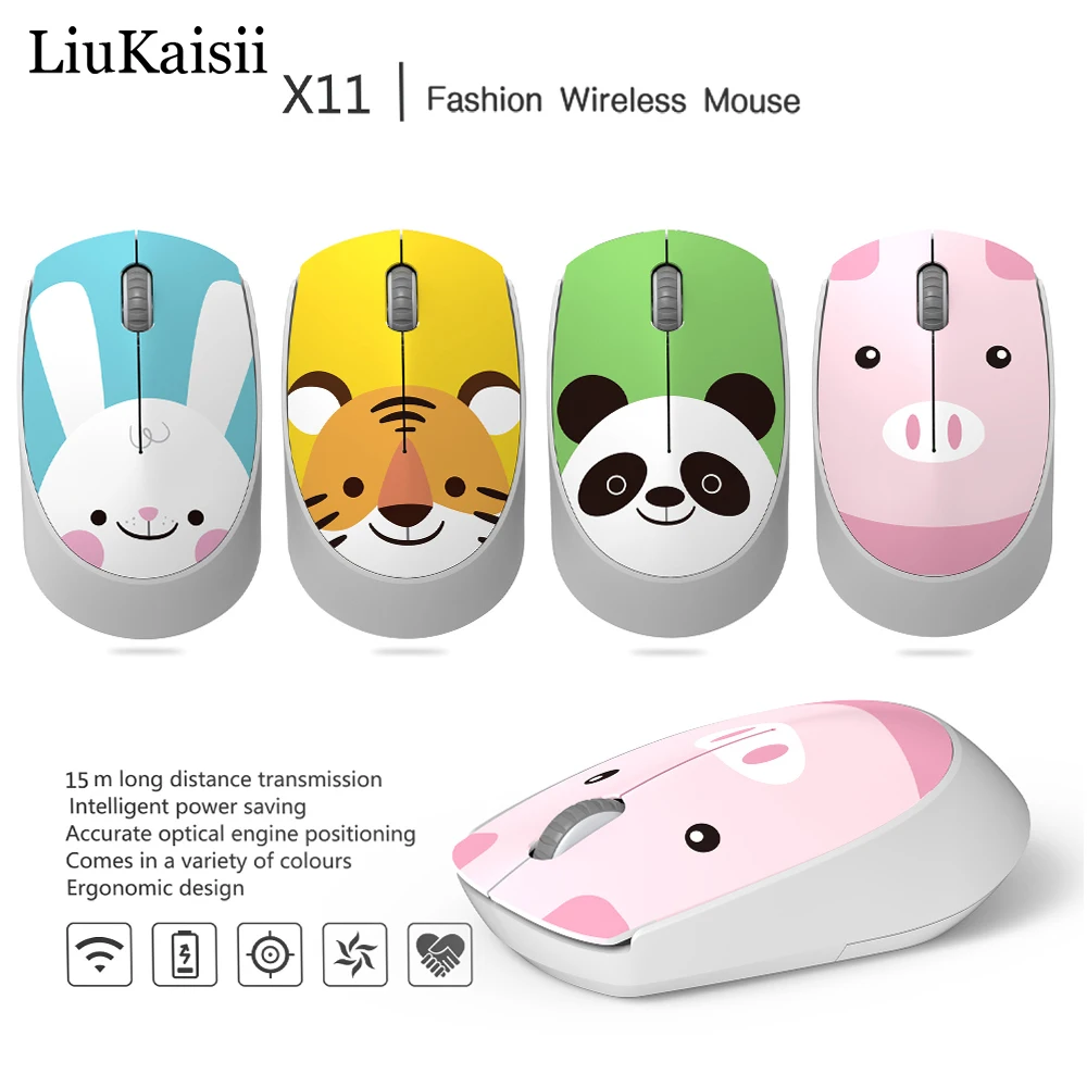 Cute Wireless Mouse Gaming 2.4G Cartoon Computer Mice 1600DPI Ergonomic Optical Office Mouse For Kid Girl Gift PC Tablet