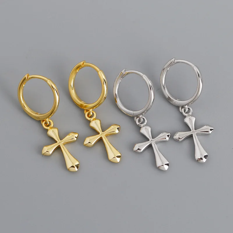 POPACC 925 Sterling Silver Cross Punk Hip-Hop Geometric Pendant Hoop Earrings for Women Gold Party Jewelry