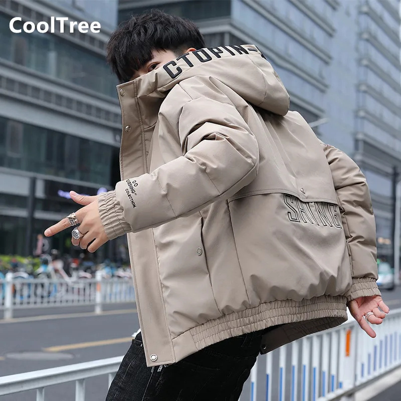 Мужская повседневная куртка CoolTree, осенне-зимняя ветрозащитная Толстая теплая хлопковая куртка с капюшоном, Мужская однотонная облегающая ...