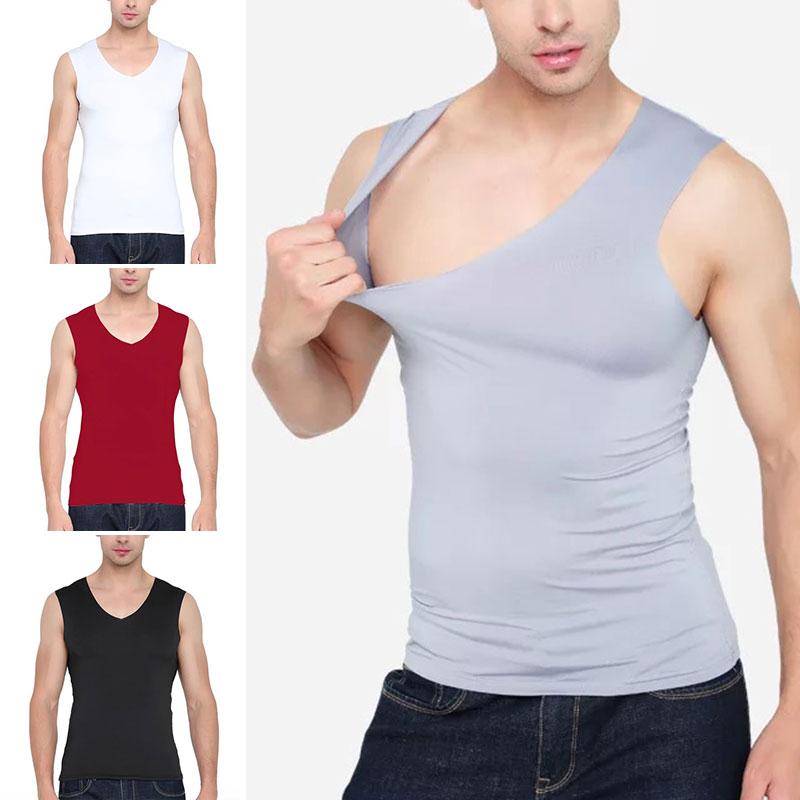 Мужская повседневная ледяная шелковая жилет майки нижняя рубашка быстросохнущая V-образный вырез / круглая шея летняя бесшовная